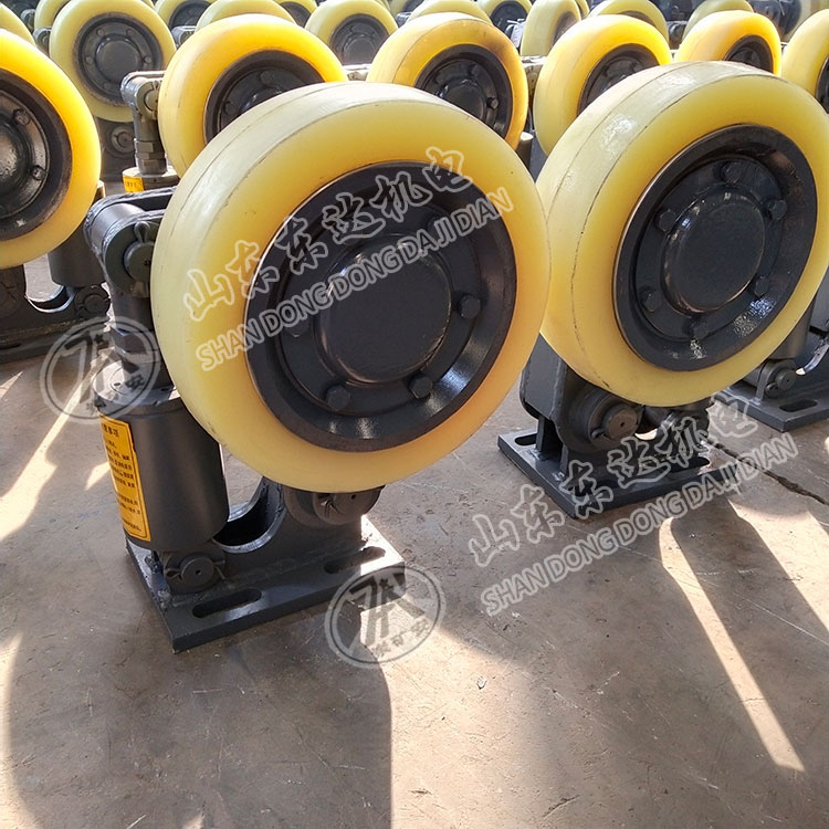 3、缓冲器复位压力小,可有效地避免滚轮与罐道产生异常碰撞。通过杠杆传递到减震筒上,同时起到导向、缓冲与稳定作用。